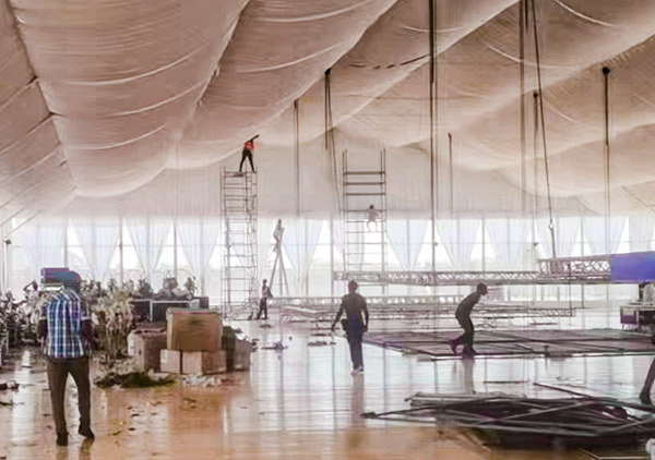 Last month, the son of the vice president of South Sudan got married. In advance, they purchased two sets of aluminum curve tent and a series of facilities and decorations from us. To help them quick set up the tent, we sent one of our engineers to South Sudan to guide the construction. Under the joint efforts of both sides, two grand and atmospheric aluminum curve tent were erected;